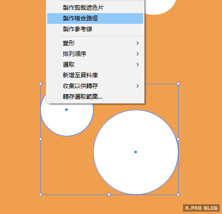 選擇兩個圓後,按右鍵→製作複合路徑