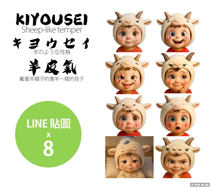 戴著羊帽子的羊小孩,任性自我中心第二種生活表情系列