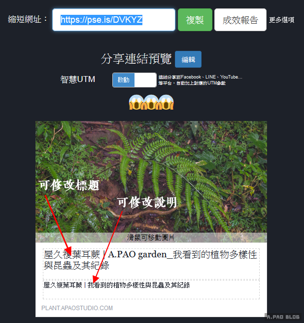 ▼複製網址後,貼入FB或是LINE裡頭