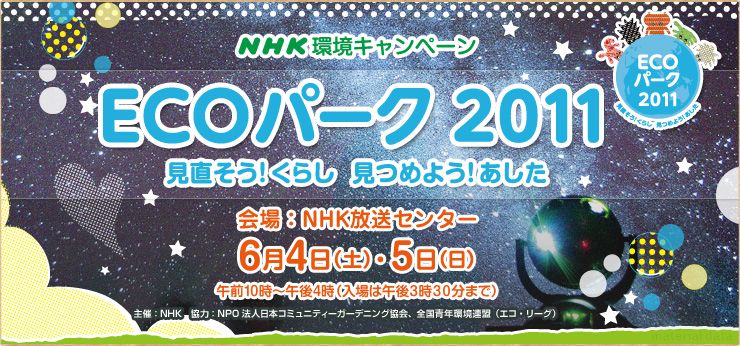 日本NHK於平成15年開始展開的環保活動[ECO Park 2011 - 重新審視!看看我們的未來生活]。今年以環保生活為主題,配合大學生和NPO團體一起的活動,讓大家一起來思考如何對於地球的有更好的生活品質。