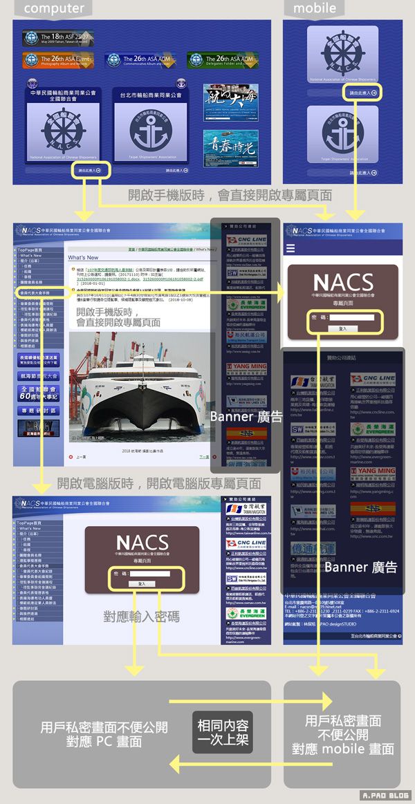 我們的做的網頁在維護上也很簡單,只需要上一種文字與圖片,就可以自動對應到兩個版本(電腦與網頁)的網頁內容,讓更新內容的管理者,可以在短時間維護自家的網頁與網站。