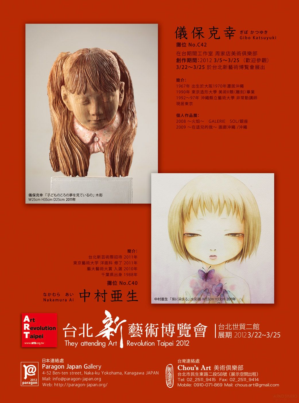 日本 儀保克幸(木雕家)與中村亞生(油畫)於2012年3月22日-25日的展覽廣告