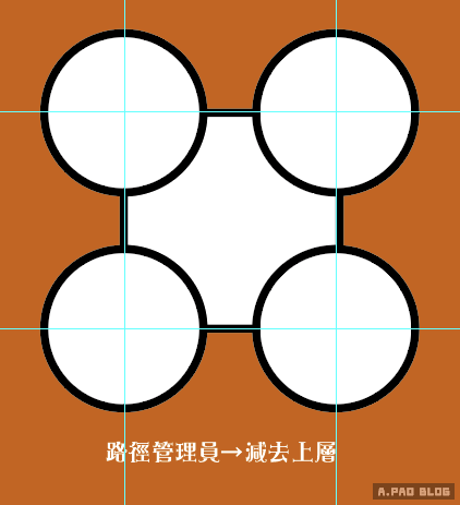 ▼先準備一個四方形與相同大小的四個圓,四個圓的圓心要在四方形的四角之上
