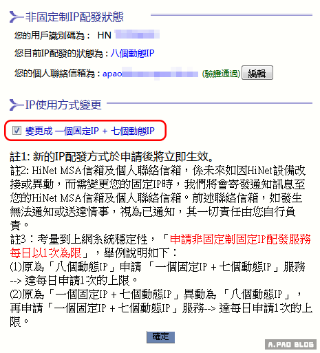 3.開啟信箱,並做完認證之後,再回到這裡(申請固定IP配發服務),
