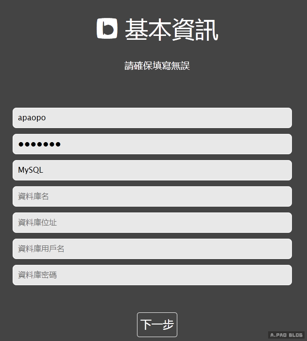 4.以上欄位都沒有沒有問題的話,就會進入另外一個畫面