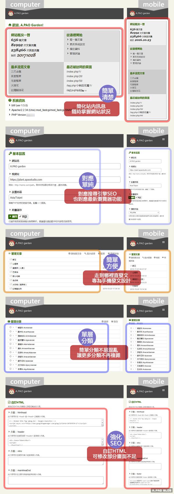 2.後台欄位簡單,不熟悉程式碼的管理者也可操控