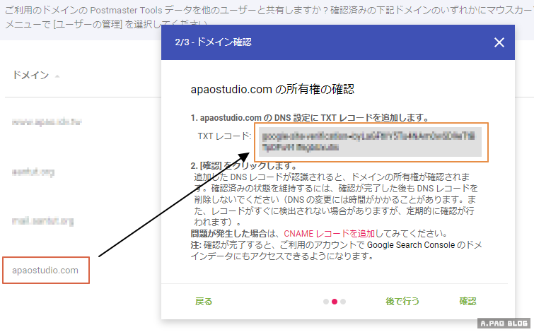 取得「TXT 紀錄」,再到網域名代管公司的管理介面中並將其貼上