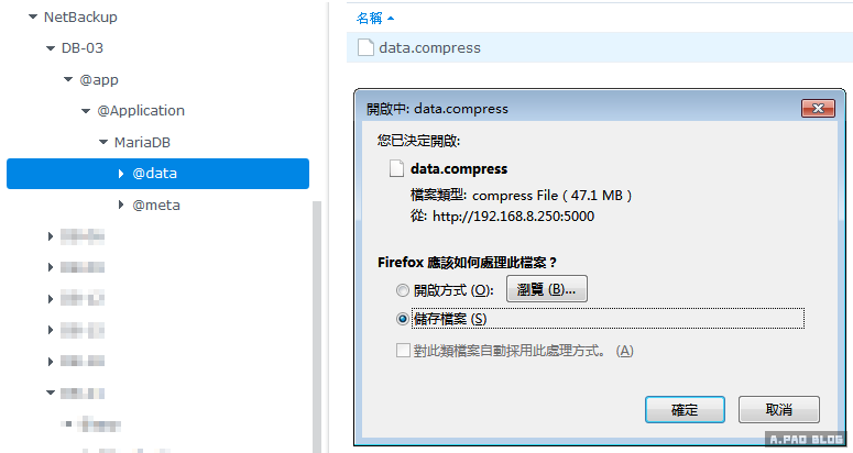 Synology自從升級至DSM5之後,便找不到資料庫單獨備份或還原的機制,原因出在於MySQL賣給SUN之後,2009年再轉賣給甲骨文公司(Oracle)收購昇陽(SUN)微系統公司,MySQL成為Oracle旗下產品,之後Oracle大幅調漲MySQL商業版的售價。NAS便轉向MariaDB當資料庫,要單獨資料表或是單一網站的資料庫要備份或是還原,就會變成整個NAS的資料庫還原,讓使用者不知所以然,透過與支援中心不斷的溝通之下,終於找到變通的辦法。
