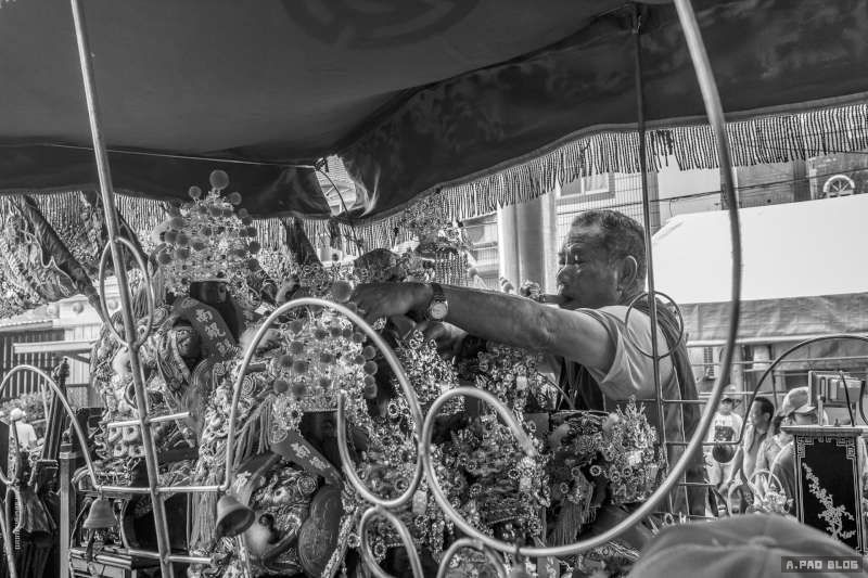 5.第二天,相機因為前一天放在室內,室內冷氣開得十分大,在冷熱溫差過大狀況,相機與鏡頭出現起霧現像,幸好廟裡面有一個大風扇,在等到溫差不大的時候,便拿到風扇下不斷交換鏡頭,水氣約在一個小時內漸漸退去。