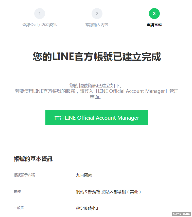 繼續進入「前往LINE Official Account Manager」