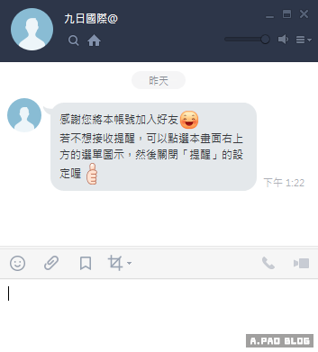 ▼九日國際的LINE@官方帳號