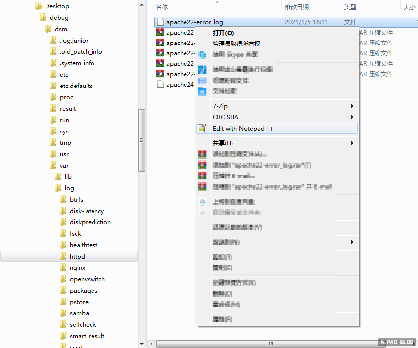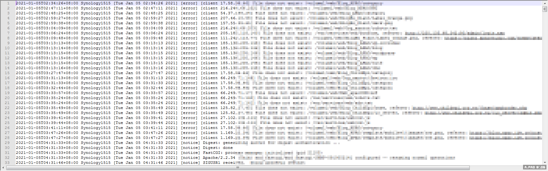 ▼用 Notepad++ 開啟 apache22-error_log 檔案看看