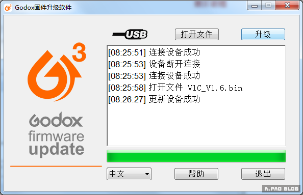 4.啟動 Godox G3 + 開啟升級檔案->升級