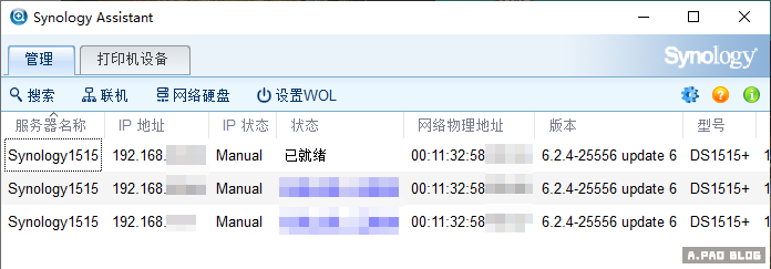 ▼透過虹谷資訊的工程師的巧手幫忙更換了主機板後,拿回辦公室的兩台1515+,同一個位置上硬碟互換後,再修正一下,就完成移動伺服器的轉移了