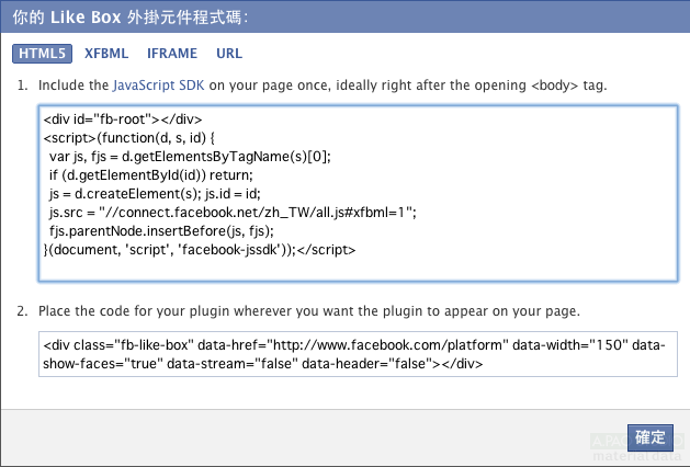 按下你的需求,將程式碼放入你的網頁中就可以了。