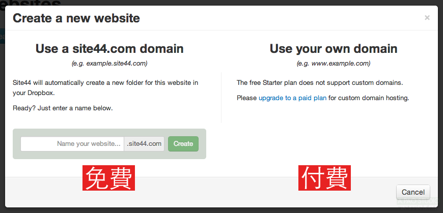 ▼現在免費只能一個網站。按下Create a new website
